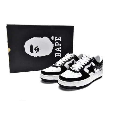 BAPE Sk8 Sta Low. This legendary silhouette from A Bape boasts a timeless design crafted with premium materials for unmatched comfort and durability. The bold, contrasting STA logo on the side screams streetwear authenticity, while the clean lines and low-top profile offer endless styling possibilities.