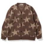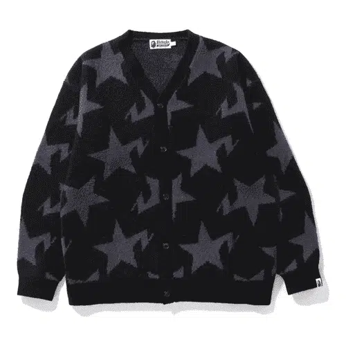 The BAPESTA Star Pattern Relaxed Knit Cardigan is made with a knit fabric that supports comfortable daily wear and layering. Its relaxed fit allows ease of movement, while the button-front design offers practical styling flexibility. The star pattern is integrated across the garment, aligning with contemporary streetwear design. Ribbed trims help maintain structure during regular use, making this cardigan suitable for casual and everyday settings.