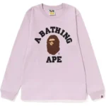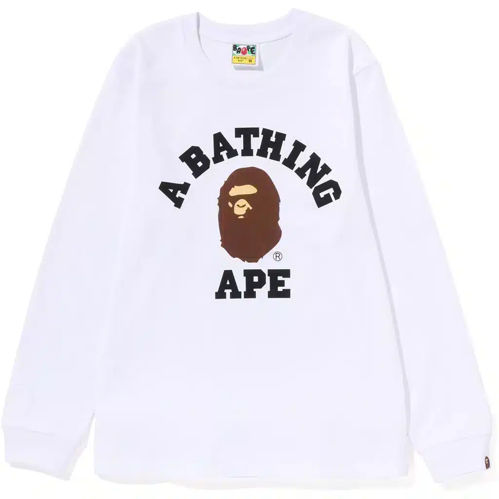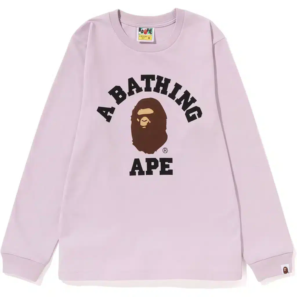 The BAPESTA x Collage Ladies Long Sleeve Tee is a cotton long sleeve T-shirt created for regular casual and streetwear use. It features a classic crew neck design with long sleeves, offering coverage and comfort for daily wear. The regular fit allows for ease of movement, while the collaboration design reflects the joint BAPESTA x Collage release. This piece focuses on practical construction, breathable material, and straightforward styling suitable for everyday outfits.
