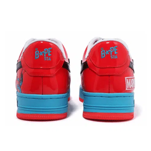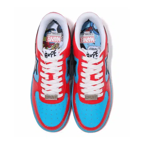 The BAPESTA x Marvel Spider-Man Shoes are constructed with a leather upper designed for durability and regular use. The low-top silhouette supports natural foot movement, while the lace-up closure ensures an adjustable and secure fit. A cushioned insole contributes to comfort during extended wear, and the rubber outsole provides reliable traction on various surfaces. Design elements inspired by the Spider-Man theme are integrated into a clean streetwear profile, making these sneakers suitable for daily wear and casual outfits.